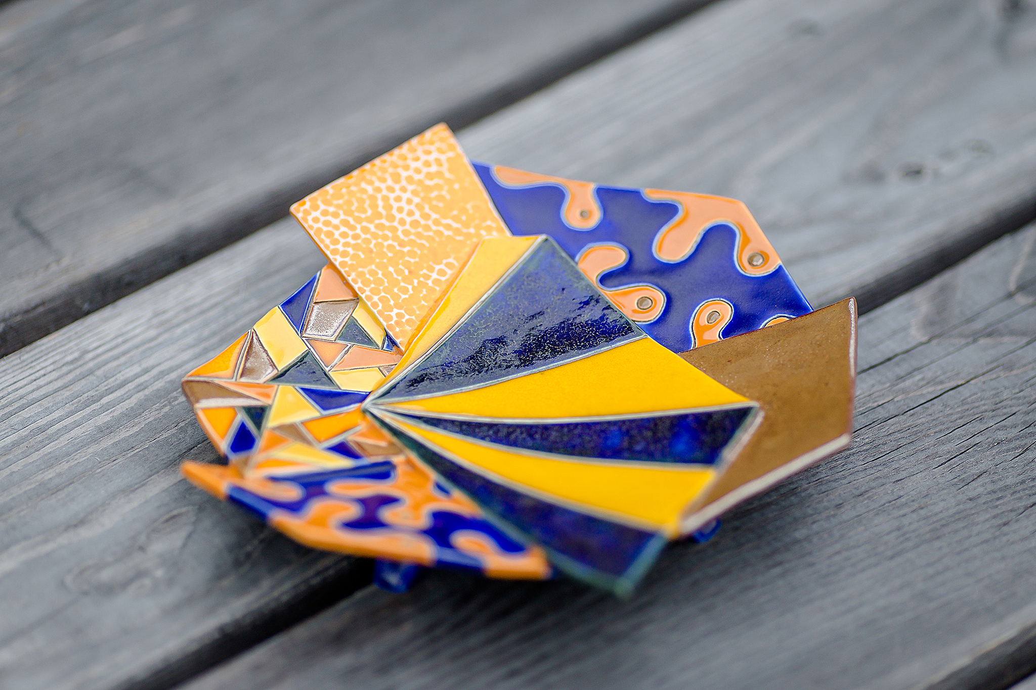 Vienetinė rankų darbo lėkštė, ilgis 23 cm.